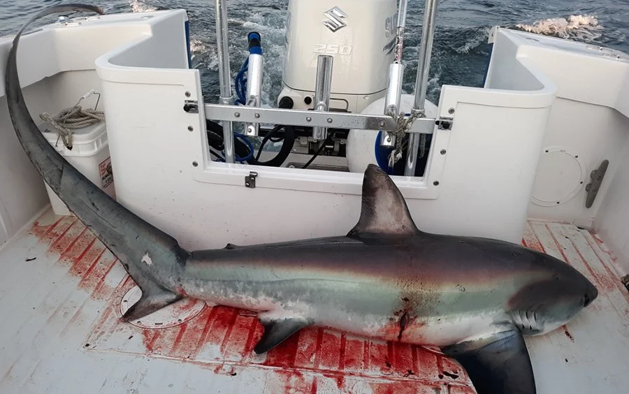 This unique nearshore trip targets primarily thresher and brown sharks. Anglers will use light tackle to battle sharks in sight of the beach.